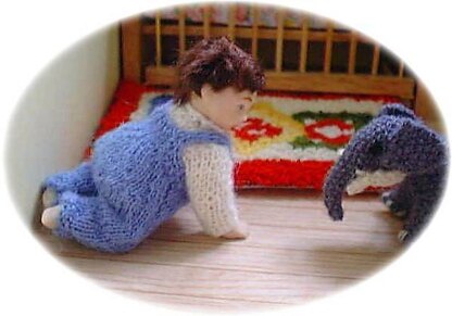 Finished sizes: Dungarees - approx ¾-inch/2 cm across chest, inside leg length 1-inch/2.5 cm, total length approx 2½-inches/6 cm. Rib Jumper - approx ¾-inch/2 cm across chest, approx 1-inch-/2.5 cm neck to waist, sleeve length ¾-inch/2 cm.