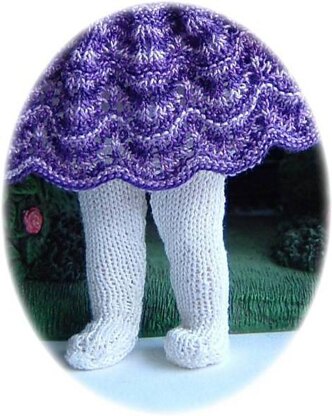 Materials required: Size 20 (0.90 mm) knitting needles, No 80 crochet cotton (approx ¼ x 5 g ball) or 28 yards/25 metres 1-ply wool, elastic for waist-optional. Gauge is not important for this project as dolls vary greatly in size.