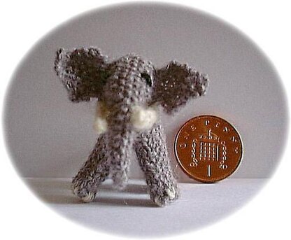 Materials required: 1 pair size 21 (0.80 mm) knitting needles, 28 yards/25 metres grey 1-ply wool, plus small amounts of white or ecru wool for tusks and toes, red wool for mouth and black wool for eyes. Small amount of polyester or other suitable stuffing, cotton wool can be used but the elephant would not then be washable.