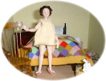 Approximate finished sizes: Nightdress – 2½-inches/6.25 cm at widest point by 3-inches/7.5 cm long. Panties – 1¼-inches/2.75 cm at waist, ¾-inch/2 cm at base of leg, ¾-inch/2 cm tall (designed to hug the hips).