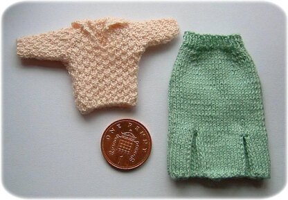Knitting pattern to make a 1:12th scale summer skirt and jumper c. 1945 to fit a 5½ -inch/13.75 cm dolls house doll.