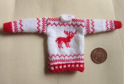 Finished sizes: To fit a 6-inch/15 cm tall male dolls house doll – jumper approx 2½-inches/6 cm tall by 1¾-inches/4 cm wide