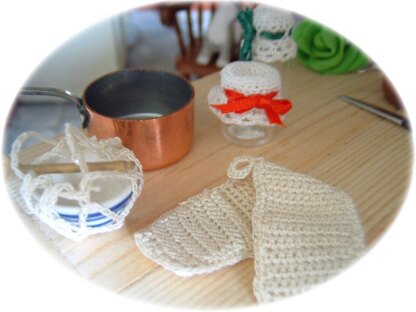 1:12th scale Oven gloves, jar cover & basin holder