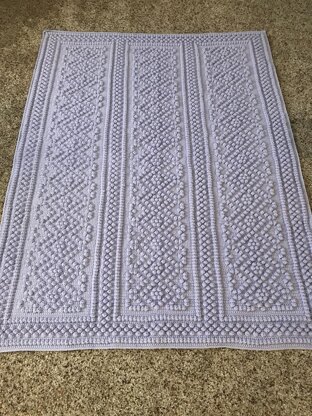 Yarn: Caron One Pound (4800 yards ) Hook: 7 (4.5) Finished size: 51 x 65 approximate Yarn choice, hook size and tension may alter finished size.