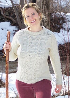 His and Hers simple cable sweater is classic and warm and works up in a jiffy using bulky 100% American grown and processed Merino wool.