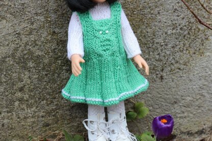 The set consists of white blouse and dress. The blouse is knitted in a single piece from the top-down. Has a back Velcro fastening. The dress is knitted from the bottom up. An ideal gift for the little dolls´ owners! The pattern is very detailed. It comes with easy to follow written instructions and photo tutorial. The photo tutorial contains many helpful step-by-step pictures to make the project as easy to follow as possible.
