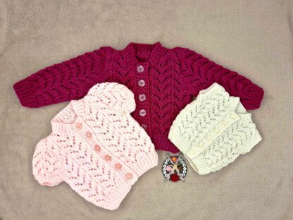 PDF instructions for you to knit this girl’s lacy waistcoat or cardigan. The pattern starts from premature sizes and goes up to 3 months of age. It is suitable for either babies or reborn dolls. Within the pattern, there is a choice of either no sleeves, short sleeves or long sleeves. This makes it ideal for any season.