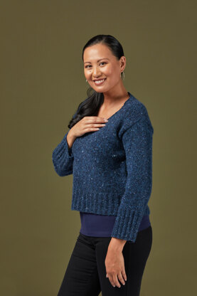 Valley Yarns Kalahari is a luxury clean-lined and slightly cropped women's popover knit in Taconic. The sweater features a mistake-rib hem with stockinette stitch to enrich both fit and style with an overlapping v-neckline and knitted-on sleeves making this an attainable piece for newer knitters. At the same time, noteworthy construction details keep experienced knitters captivated. Kalahari is knit flat in pieces from the bottom up and then seamed. Taconic is a soft blend of Merino wool and cashmere, with multicolored tweedy flecks that give the finished fabric a fantastic visual texture.