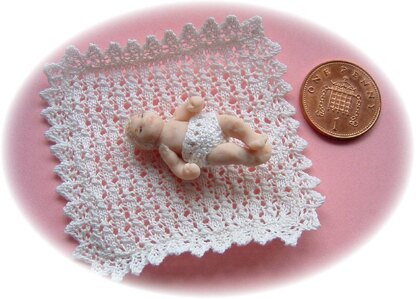 Materials required: Shawl -Size 22 (0.70 mm/ US size 000000) knitting needles, No. 100 crochet cotton, (No. 80 crochet cotton or Tatting thread No 70 can also be used, but this will give a less lacy effect and knit up slightly larger in size). Pilch Knickers -1 pair size 24 (0.55 mm/US size 00000000) knitting needles, 17 yards/15 metres No. 100 crochet cotton, ribbon for waist tie.