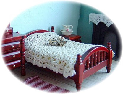 Gauge: is not important in this project, as the bedspread and blanket are designed to fit any 1:24th scale bed, as these vary considerably in size and more or less rows can be worked to suit.