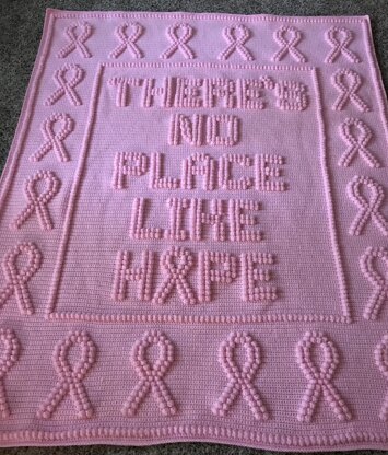 Blanket reads THERE’S NO PLACE LIKE HOPE