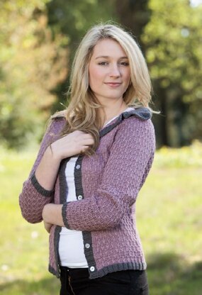165 Eaton Place is a woman's cardigan inspired by the BBC show, "Upstairs, Downstairs". It is the type of cardigan one would wear to afternoon tea but will work just as nicely as a cardigan to wear to work. It is worked from the bottom up in an alternating slip stitch pattern. Sleeves are worked in the round and then joined to the yoke. Ribbing in a contrast color are worked on all edges, including the button band. The contrast color is also used for the collar (which can easily be left off if you choose!)