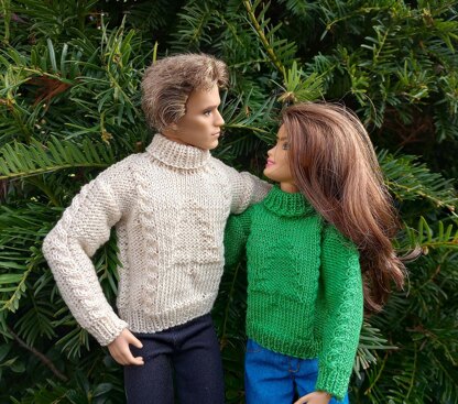 Materials required: For a male doll: 2.00 mm knitting needles, for a female doll: 1.50 mm needles. Both male and female: cable needle or spare double pointed needle, plus 75 metres No 10 or No 12 crochet cotton (use No 10 cotton for Broad Ken or Curvy Barbie dolls) and 2 stitch holders or safety pins For 1:12th scale see pattern.