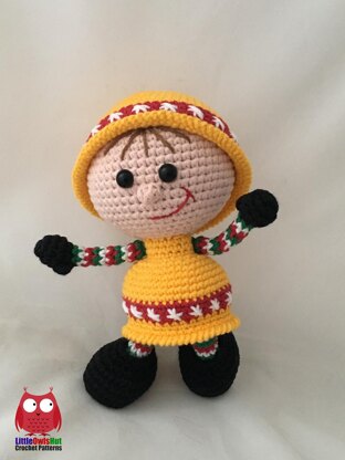 • Any yarn in skin, yellow, green, white, black, and red colors. I used “Jeans” by YARNART (55% cotton, 45% acrylic, 160m/50g) – 15-20 g of yellow, 12 g of skin, 3 g of black, small amount of green, red, and white.
