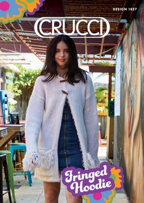Women's Fringed Hooded Jacket knitting pattern. Uses Sloppy Joe 14 ply wool. Intermediate skill level.
