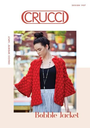 Pattern 1927 is for a women's bobble jacket, using CRUCCI Sporte 14ply wool. Intermediate skill level required. Comes in sizes S-XL.