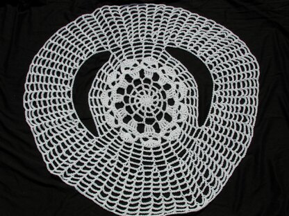 Something fun for the real life sized people. Host of this shindig happens to be an arachnid. She has invited some of her favorite skullie buddies to dance around her new web.. Fast 1 or 2 skein project. Quick, and inexpensive enough to make for a one time debut as a Halloween costume.1X Back Measures 18 inches across before armholes. Finished Diameter 40 inches 2X Back 22 inches in diameter . Finished diameter 44 inches 3X Back 26 in diameter . Finished diameter 48 inches 4X Back 30 inches in diameter . Finished diameter 52 inches