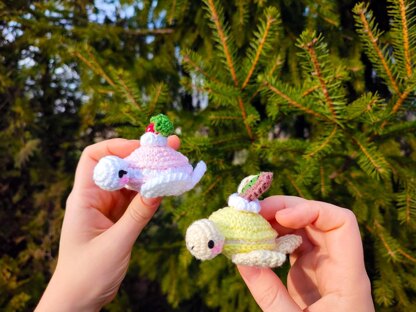 These are macaron turtles that are available in two flavours: strawberry-creamy macaron and banana-kiwi macaron! This is 2-in-1 pattern so it includes pattern for both macaron turtles! Also the pattern is super easily modified so you can crochet orange slice using pattern for kiwi! Pattern contains photo tutorial :).