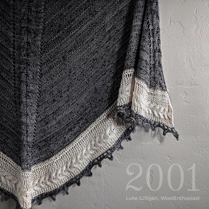 The 2001 shawl was inspired by the works of Ansel Adams, specifically the 2001 Engagement Calendar. Ansel Adams (1902–’84) was an American landscape photographer known for his black-and-white images of the American West. Adams’ work is widely recognized and he remains one of photography’s most-loved artists. I wanted the 2001 shawl to capture Adams’ mastery of black-and-white film and majestic mountain range artworks.