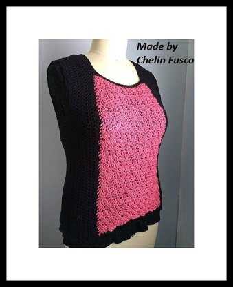 Because this pattern works sideways, there is much ease, as it is worked in the ribbing stitch as well. The Shell panel in the center is a nice style element. Very easy, but I will say this is intermediate level, as it requires you to make a few simple judgments regarding placement of shoulder extension, width of straps, and adjusting if necessary to end with a full shell in the borders along the bottom and armholes. . --CLICK HERE TO ENTER MY RAVELRY STORE: http://www.ravelry.com/designers/emi-harrington