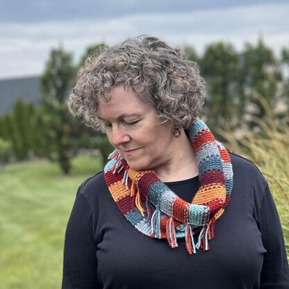 Grab some mini-skeins or dive into your stash to create this striped cowl! It’s fun to knit and fun to wear! The clever fringing method means there are no ends to weave in — but you can always omit the fringe if it’s just not you.
