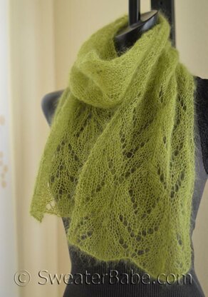 Knit this highly-giftable scarf in any of the many kid mohair/silk blends of lace-weight yarns (see materials section for yarn options). An amazing stash-buster!