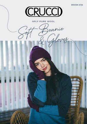This pattern is for a a Women's Soft Beanie and Gloves, using CRUCCI Pure Wool Soft 8ply wool. Intermediate skill level required.