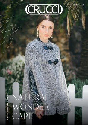 This pattern is for a women's knitted cape, using CRUCCI Natural Wonder wool. Intermediate skill level required. Comes in sizes S-XXL.