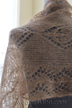 I adore the silky softness of a kid mohair and silk blend yarn. And (as you can tell), I'm always drawn to lovely lace patterns. This stole features not just one, but two breathtakingly beautiful lace stitch patterns, artfully combined and gorgeously presented when knit up in the kid mohair and silk blend yarn.