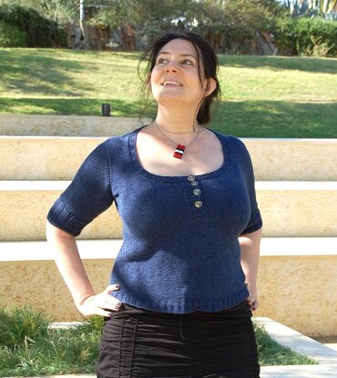 This is a pattern for a summer henley worked with short or elbow length sleeves. It is worked from the top down flat and in the round in stockinette st with set in sleeves. The sleeve cap and shoulder seams are shaped with short rows.