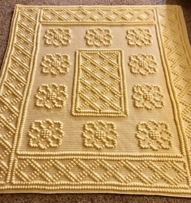 Blanket in photo was made with Caron One Pound & G hook. Yarn choice, hook size and tension may alter finished size.