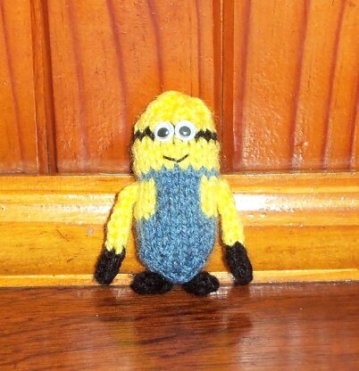 This cute little Minion is just 2.5 inches or 6cm when standing and knitted in double knit yarn. It is a very simple pattern, and a good pattern to start with if you haven't made a toy before.
