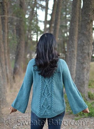 This is a seamless project, except for a tiny bit of seaming at the bottom hem of the body and the sleeves, if you wish to knit them in rows. Instructions are given for the sleeves to be knit as rows or in the round.