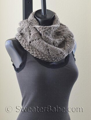 Near the top, gentle shaping is integrated into the lace design to slightly taper the cowl for a better fit. The cowl ends with the same seed stitch border.