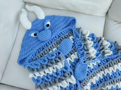 What a great idea! This cute hooded blanket is also a decoration for your room. Use it to keep warm and snug, and when you are done with it, fold it and display it on your sofa, armchair or bed. Check out my other hooded blankets in my Etsy shop. CROCHET LEVEL: Intermediate FORMAT: PDF file, pattern written row by row in US terms with side notes and photo tutorial and link to videos where needed. LANGUAGE: English VIDEO TUTORIALS: there are several videos designed to help you master some of the techniques used in this pattern such as attaching pieces together, the blanket stitch, etc. SIZES: instructions given for adult and child sizes MATERIAL NEEDED: super chunky ( super bulky yarn, #6) Blue Gray White Child 7 4 5 Adult 9 5 6 HOOK: 10mm, 8mm, 6.5mm SKILLS: this pattern uses basic stitches such as single crochet, double crochet, etc. You need to know how to read a crochet pattern.