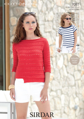 3/4 and Short Sleeved Boat Necked Tops in Sirdar Cotton DK - 7081 - Downloadable PDF is a Knitting pattern by Sirdar, available as a Downloadable PDF and includes instructions in English. Super fun to make, this pattern could be your next masterpiece!