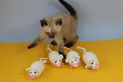 This is my 3 Blind Mice Kitten Toy knitting pattern. As you can see my new baby kitten Amy loves her first toy. These mice are perfectly safe for the youngest of kittens yet due to their construction can stand up to the roughest kitten play. They use only a tiny amount of any chunky yarn and are knit on 3 mm needles to make them super strong for kitten attacks. They are incredibly quick and easy to make, ( I lost count and made 4 instead of 3 without noticing). The pattern provides full instructions plus photos to help you with the simple makeup. This pattern is now available to buy here.