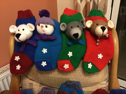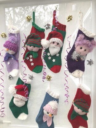 The stockings and faces are knitted flat. The faces are assembled and then stitched to the stocking before it has been sewn up. I promise they are very easy with the minimum amount of assembly. I have included a step-by-step guide to help you, should you need it. Because the guide is full of photos it is a good idea to only print off the pattern direction and save the guide to view on screen should you need any guidance, you will save a lot of ink that way.