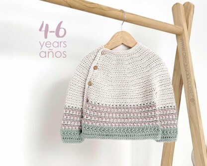 The TICA Sweater features a unisex design, made with three beautifully coordinated colors, perfect for babies and little ones. It combines a fantasy stitch base, delicate star stitch, and the moss stitch to add texture and softness.