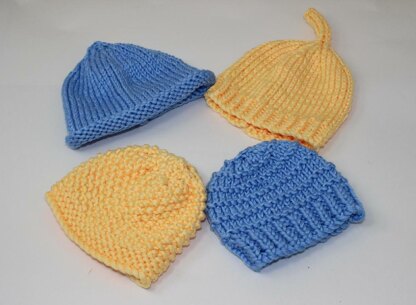 This is my 4 Easy Design Chunky Baby Hats knitting patterns. These lovely baby hats are quick and easy to make. The knitting pattern provides full instructions for 5 sizes XS (preemie/tiny baby), S (0-3 months),M (3-6 months),L (6-12 months) & XL (12-24 months) with photos to help with the very simple makeup.