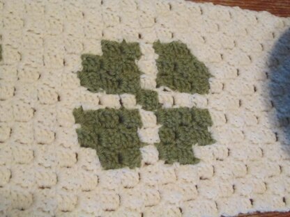Pattern for a corner to corner table runner with a four leaf clover design.