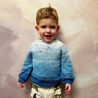 This 5 colour fade jumper is knit from the top down in one piece in the round. The armholes are shaped with raglan increases, after which stitches are set aside for the sleeves to be knit later. The body is then completed with a ribbed edge. Finally, the sleeves are knit in the round and finished with a ribbed edge.