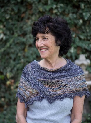 It starts with a lace edging, then decreases are used to create the angles that make the shape. There are lacy bands of different textures that will show off the gradient yarn, since different lace textures will also be different colors.
