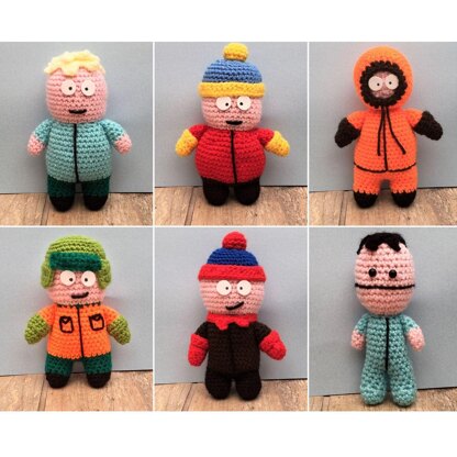 In this collection you will receive the patterns for Stan, Kyle, Cartman, Bubbles and Kenny.