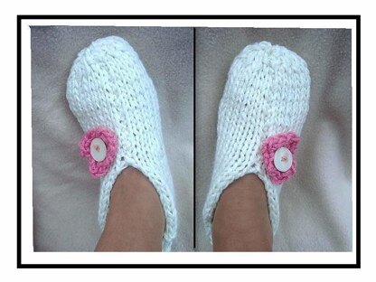 Knitted flower instructions included. Very easy to knit. Easily finish the pair in 2 hours! Lovely, cozy, warm women's slippers.