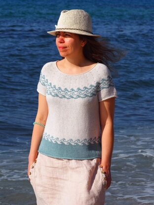 7 Seas top is a circular short sleeve yoke that is worked seamlessly from the top down. The neck is worked first, after that, several series of short rows are used for a comfortable and beautifully shaped finish.