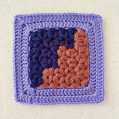 This motif is a part of the Jasmine Stitch Granny Square series. Each side of the square motif match to triangle motif and other square motifs.
