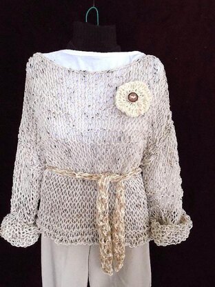 KNITTING PATTERN, Pullover-Sweater, Adult Small, Medium, Large, XLarge, Women and Teens, Easy beginner knitting, #790, Knit FLOWER also in pattern.