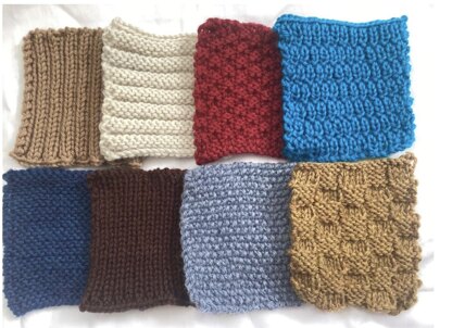 This is a free knitting pattern which includes instructions and photos for eight simple reversible knit stitch patterns ideal for beginners. You can use these for blankets, shawls, cowls and scarves.