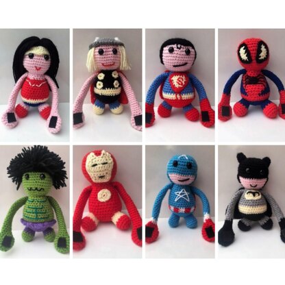This crochet collation contains written patterns for 8 Superheroes. These Superheroes have the special ability of having long arms so they can cling onto things like prams, cribs and curtains for all children to play with.